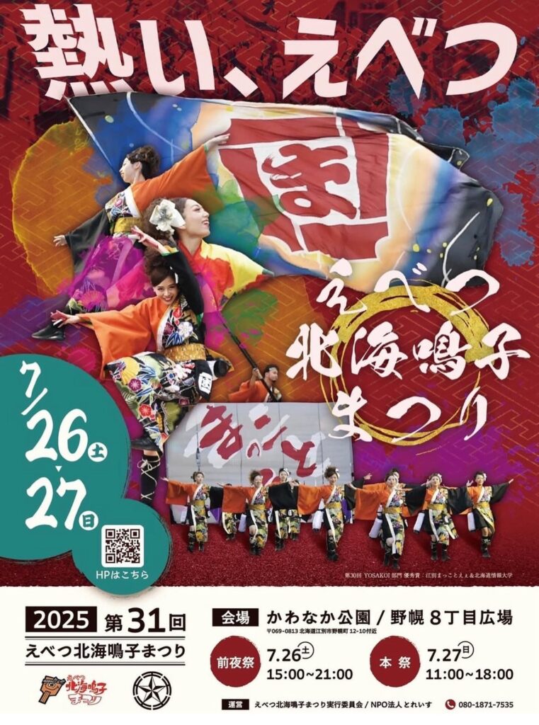 7月26日(土)・27日(日)の2日間にわたって開催された第31回えべつ北海鳴子まつりが無事終了いたしました🎉